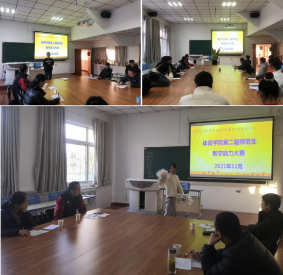 经过前期教案设计环节的比赛,本次19、20、21三个年级共有10名选手进入决赛。比赛中,每人进行10分钟左右的现场教学演示,各位选手仪表端庄、教态自然、逻辑条理清晰,展现了体育师范生应有的专业基本功和教学技能。