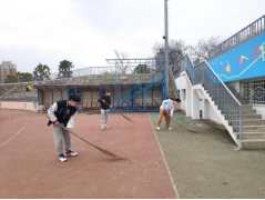 同学们劳动积极性非常高,干的热火朝天,擦窗拖地、整理桌椅、清倒垃圾......经过几个小时的努力,公司的办公室、接待室、展览室、党员活动室窗明几净。随后又对体育场和各个球场进行打扫,并对篮球场、足球场、羽毛球场、网球场等地的球网和其他设施进行维护修缮。老师和员工们全身心投入,劳动成果显著,体育场周边环境干净整洁,为全校师生创造了良好的运动环境。
