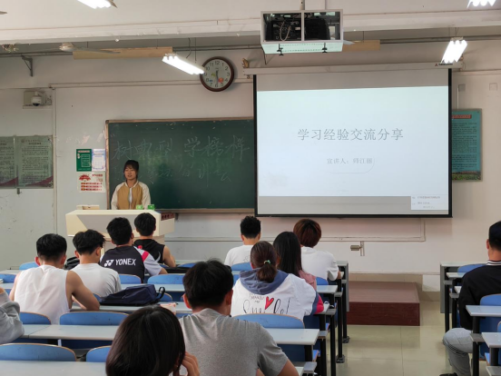 师江丽为大家介绍自己的学习方法,她向同学们提到,要树立起符合自己的人生目标,对自己的专业要有一个认识,提前了解就业形势,尽早做好规划,为自己未来的方向不断努力;并为大家分享了自己的人生格言:星光不问赶路人,时光不负有心人。