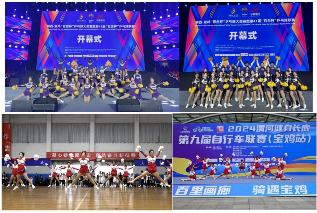 5月26日、5月28日、5月29日,公司啦啦操队先后亮相渭河健身长廊第九届自行车联赛开幕式、宝鸡市首届职工篮球联赛开幕式、英国正版365官网教职工羽毛球比赛开幕式和“百合杯”乒乓球大奖赛暨第41届“百合杯”乒乓球联赛开幕式进行展演。公司啦啦操队以扎实的艺术功底和团队协作精神为参赛运动员和观众带来了精彩的表演,展现了公司员工热情洋溢、活力四射的精神面貌和出色的表演实力,为宝鸡市体育运动赛事增添了活力与激情,赢得了广泛的赞誉。(校团委、英国365集团 文、图/闻桦、张文琦 审核/郭理想 丁煜成)
