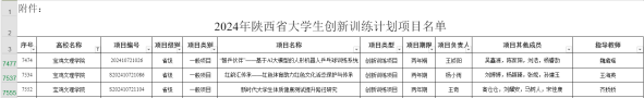 近日,陕西省教育厅办公室公布了2024年陕西省老员工创新训练计划项目(以下简称“大创项目”)名单,公司3个大创项目获得省级大创项目立项,其中1个项目被列为拟推荐国家级项目。